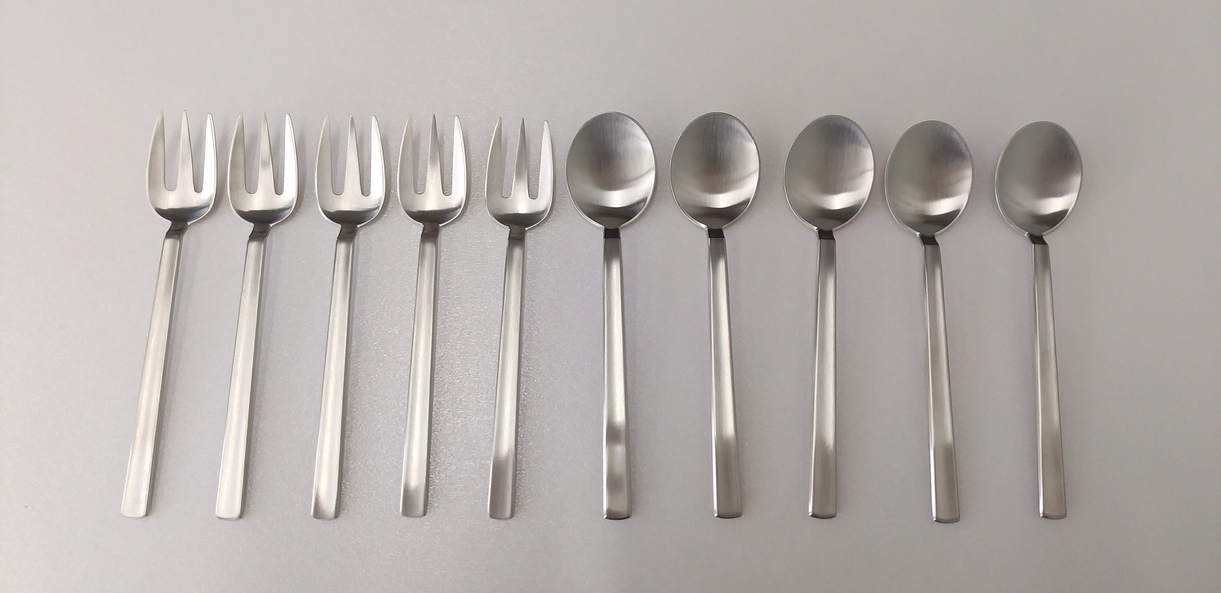 Das Set auch hochwertigem Edelstahl besteht aus 5 Teelöffeln und 5 Kuchengabeln in schönem Geschenkkarton.