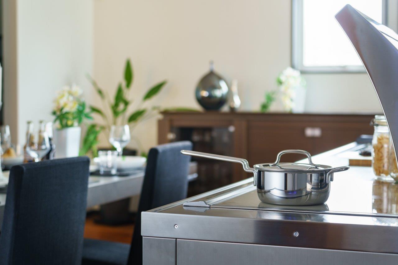 Die Oberfläche besteht aus 7 Schichten Edelstahl. Hierdurch wird die Wärme gleichmäßig übertragen und die Wärmespeicherung ist hoch, wodurch Energie gespart wird.