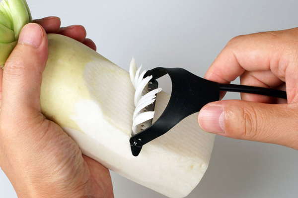 Der Julienne Schneider SENGIRI ist ein muss für all jene die Ihre Obst- oder Gemüse gerne nach Art Julienne schneiden. Blitzschnell lassen sich damit verschiedenste Obst- und Gemüsesorten schälen und für Ihre kreativen Kochideen vorbereiten. Die horizontale Edelstahlklinge ist beweglich und mit einer Länge von 5 Zentimetern eignet sie sich auch zum Schneiden größerer Obst- und Gemüsesorten.