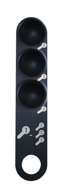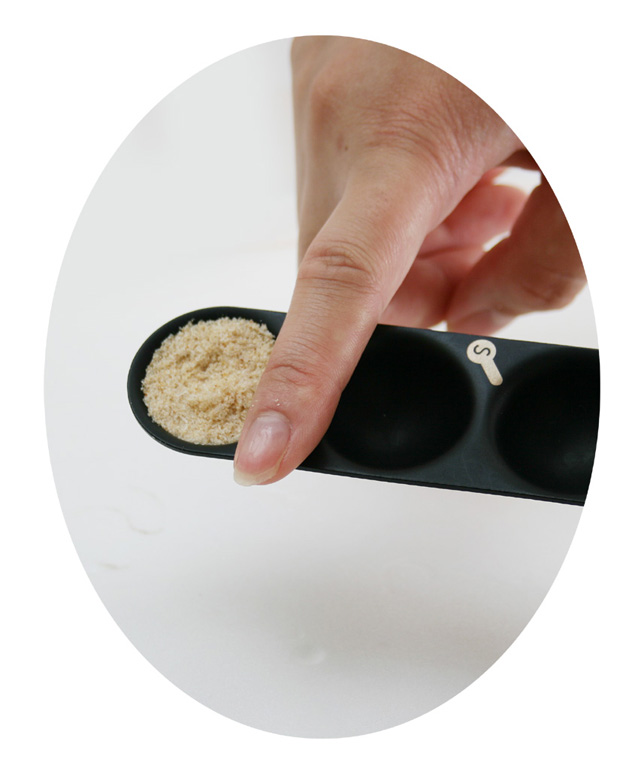 Wie schnell versalzt man sich das Essen weil man gezwungen ist über den Daumen zu würzen. Abhilfe schafft der stylische Messlöffel KEIRYO der sich an den Maßen des Tee- und Esslöffels orientiert. Die drei Einbuchtungen stehen hier für die drei Teelöffel, die zusammen einen Esslöffel ergeben.