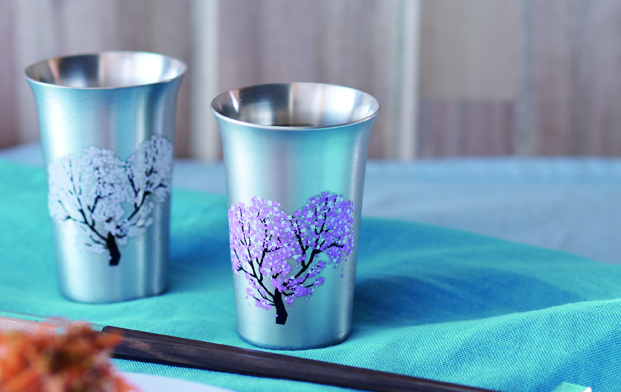 Sobald Sie kalte Sake (oder ein anderes kaltes Getränk) eingießen, ändert sich die Farbe des Kirschbaumotivs von weiß in rosa. Sobald die Oberflächentemperatur unter 16°C fällt, ändert sich die Farbe des Motivs.