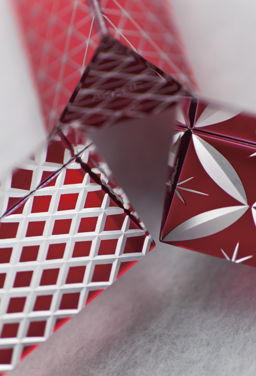 Der rote Briefbeschwerer Yarai bringt den traditionellen Edo Kiriko Stil auf Ihren Schreibtisch!